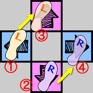 さらに、こういう配置の場合、分業で「左足→左足→右足→右足」と踏むのではなく、